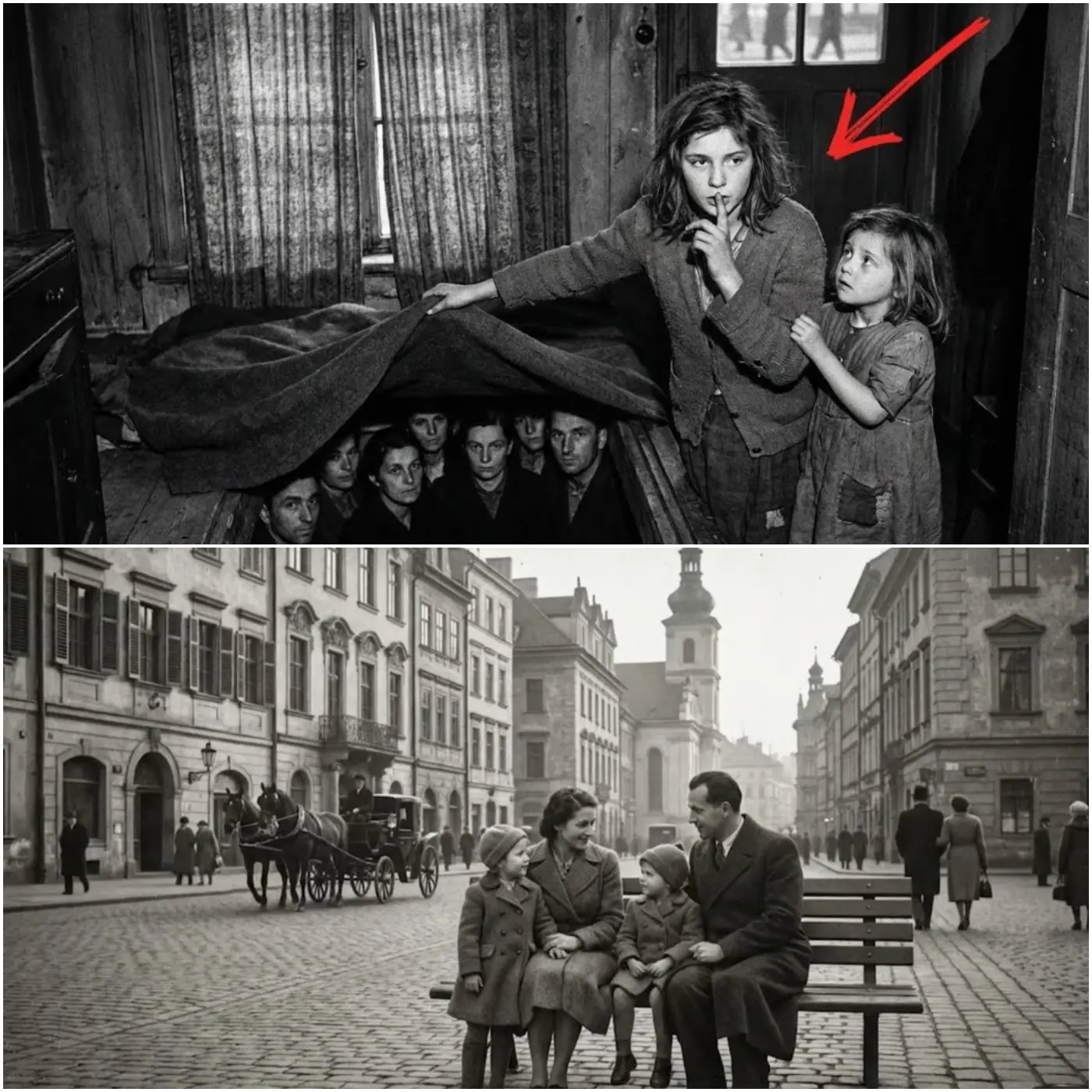 كان باب المصيدة مخفيًا داخل خزانة ملابس. للوصول إلى العلية، كان على المرء أن يُزيح رفًا وهميًا، ويرفع اللوح الخشبي، ويتسلق بحذر شديد. شخص واحد في كل مرة. لا ضوضاء. لا أضواء. لا مجال للخطأ. واحدًا تلو الآخر، تسلق الثلاثة عشر واستقروا قدر استطاعتهم. لم يكن هناك مكان للجلوس. لم يكن بوسعهم سوى الاستلقاء على جوانبهم، متكدسين معًا، يتنفسون نفس الهواء الراكد. عندما أغلقت إستيفانيا باب المصيدة وأعادت الرف إلى مكانه، عادت الشقة إلى مظهرها الطبيعي. غرفتا نوم. مراهقة. طفلة صغيرة. لا شيء أكثر.